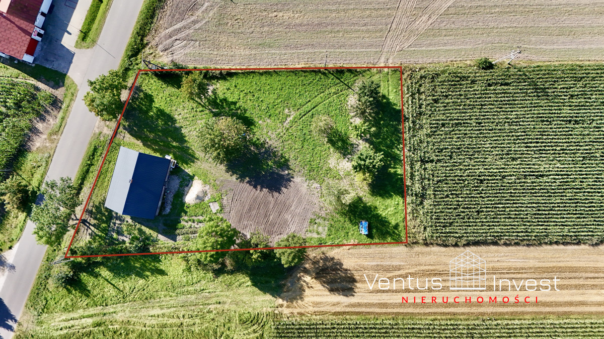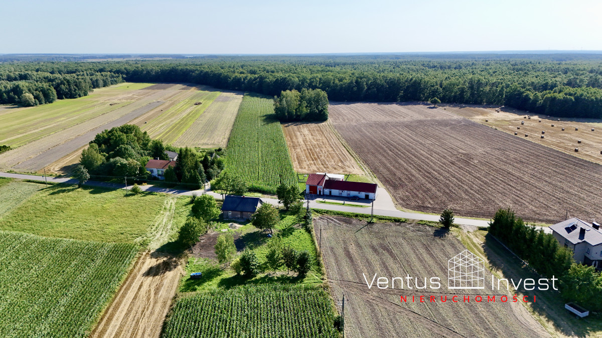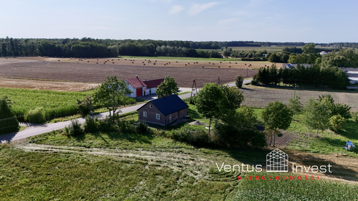 Dom usytuowany jest na przestronnej działce o powierzchni 2443 m², otoczonej otwartą przestrzenią, co zapewnia prywatność i ciszę. Na terenie posesji znajduje się również budynek gospodarczy, do którego doprowadzona jest woda. Działka daje szerokie możliwości zagospodarowania - można stworzyć ogród, sad lub przestrzeń rekreacyjną.